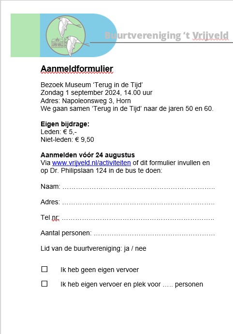 Daarom organiseren we ook activiteiten speciaal gericht op onze senioren buurtbewoners. En natuurlijk zijn deze activiteiten ook toegankelijk voor andere buurtbewoners! 1 september gaan we 'Terug in de tijd'. We bezoeken het gelijknamige museum in Horn voor een bezoek aan vervlogen tijden; de jaren 50 en 60.